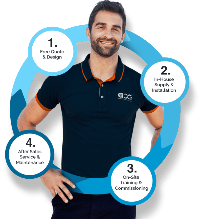 ACG has experienced air conditioning installation technicians who are committed to professionalism and a high level of workmanship. They are trained to deliver complete installation with minimal disruption to your operations. You can expect our friendly technicians to finish work promptly and efficiently, making sure schedules are met and work areas are kept clean and tidy.